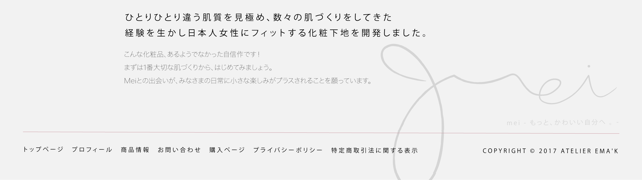 トップページ プロフィール 商品情報 お問い合わせ 購入ページ プライバシーポリシー 特定商取引法に関する表示
